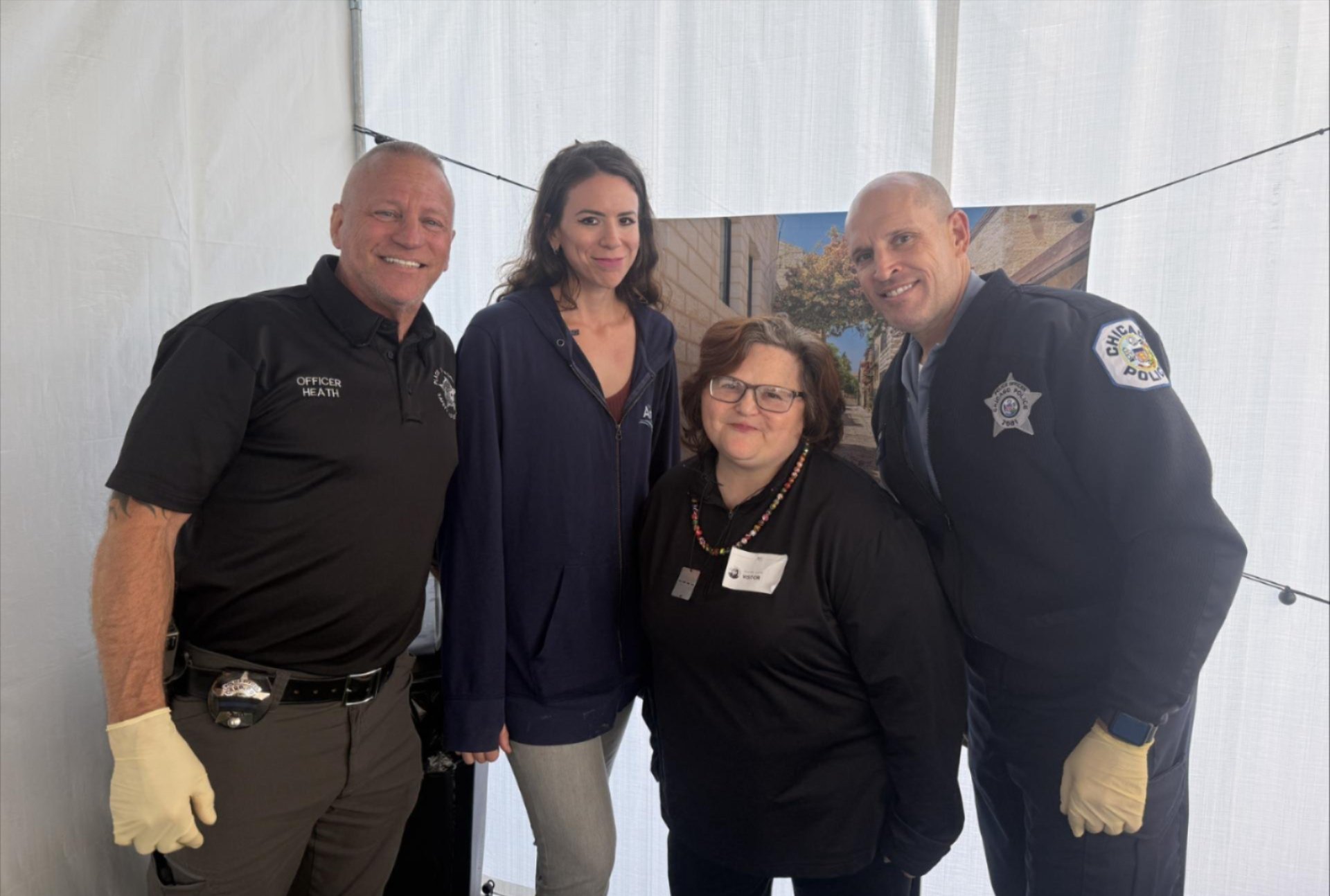 Staff and volunteers worked together to create a beautiful setting where clients shared a catered lunch, participated in an art activity, and fulfilled the mitzvah of shaking the lulav and etrog. We were honored that our local partners from the Chicago Police Department, Officers Roger Heath and Mike Specht, volunteered to serve meals.